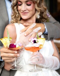 She describes what she’s seen lately as a “vibe change” from raucous partying to celebrations that feel more thoughtful, personal and guest-friendly. “I would say that people are being more ‘intentional’ about making it a more inclusive experience, even at the bar,” she muses. “We’re being asked to include more mocktail options, dirty soda bars, things like that.”